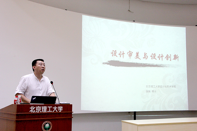 设计学院文化遗产系主任张帆教授为同学们带来了主题为“设计审美与设计创新”的讲座,他举例并反观现代设计,引导大家如何更好地理解“学以致用”,引用设计界顶层人物对设计的评价引导大家正视自己的专业与工作,提及“工匠精神”引导大家明确与尊重自己的职业,结合中西与古今各个领域的设计引导大家对自己专业的理解与思考。他希望同学们能够带着对设计的新认识继续自己的专业学习。